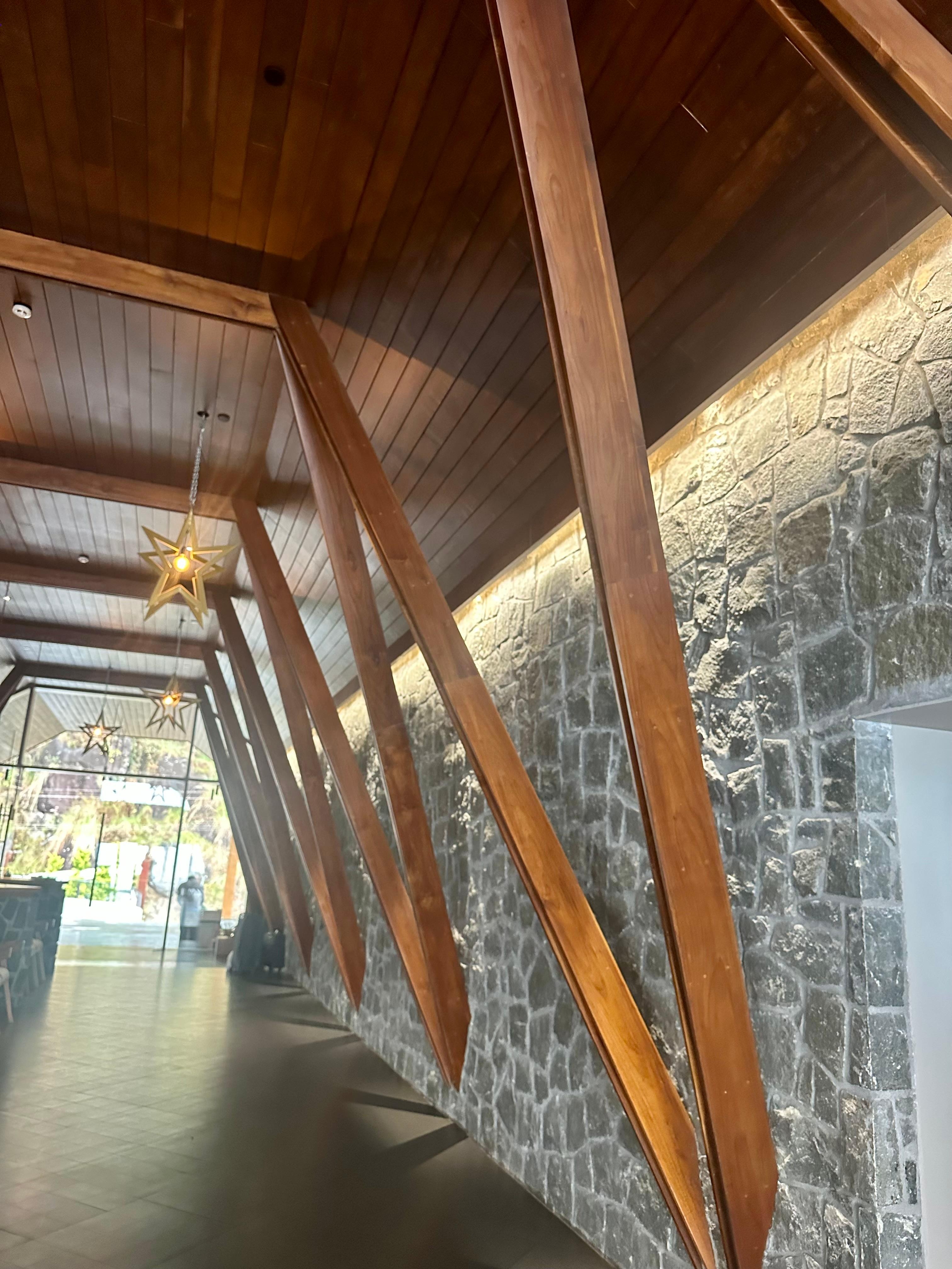 L’hôtel tout habillé de bois et pierre est agencé de façon contemporaine avec goût.