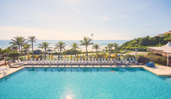 Costao do Santinho Resort - All Inclusive sits near Ingleses Beach and Barra Norte Shopping Centre. Guests unwind with hot stone massages at the spa, sip drinks at two poolside bars or the swim-up bar, and dine with ocean views at six different restaurants.