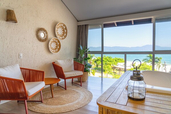 Travelers find a beachfront retreat at Jurere Beach where pristine sands meet turquoise waters, with poolside relaxation and refreshing drinks from the beach bar