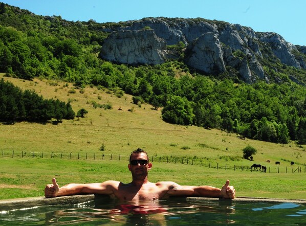 A peaceful countryside escape at Réserve Naturelle de Boussière where travelers can relax poolside or enjoy outdoor barbecues in natural surroundings