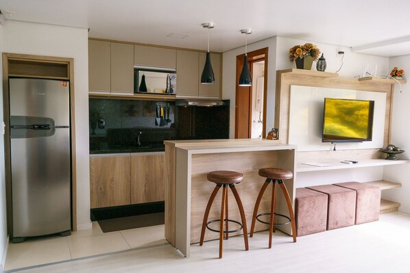 Apartment with kitchen, 3-minute walk to Gramado Central Avenue