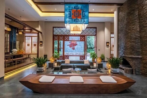 The tranquil garden at Geya Sigu Health Holiday Hotel provides a peaceful retreat, complemented by an inviting coffee shop/cafe. Visitors enjoy relaxing massages and entertainment in the arcade/game room, while a library and conference center serve practical needs.