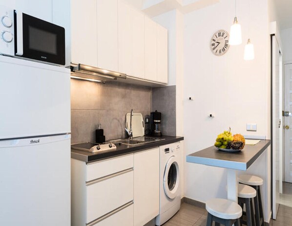 Refrigerators, microwaves, and cookware/dishes/utensils
