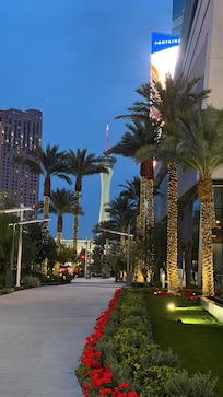 A luxury retreat in Las Vegas where travelers can indulge in fine dining, relax by multiple pools with cabanas, or enjoy world-class shopping