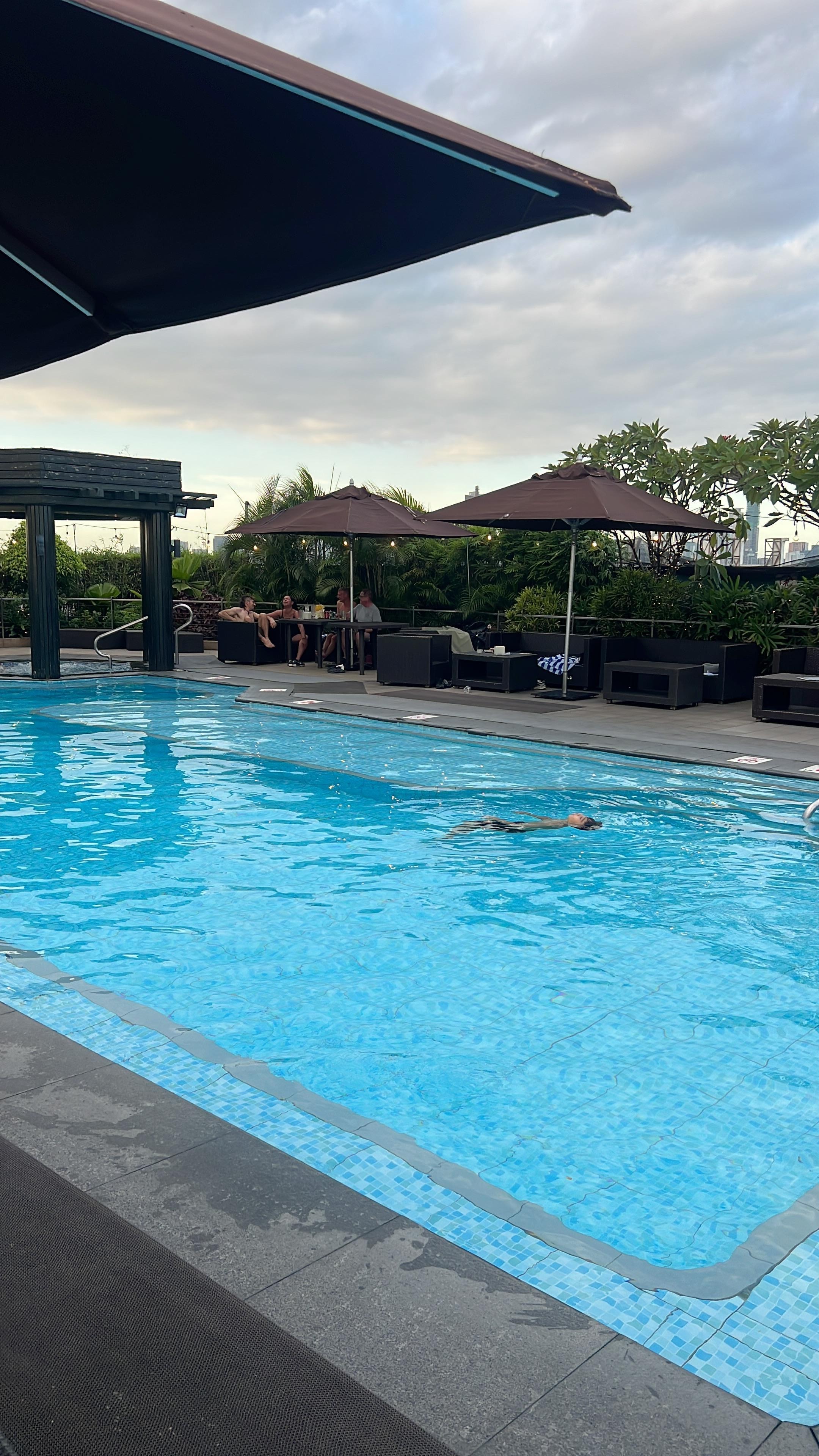 Travelers refresh with a poolside lounge or invigorating massage at Belmont Hotel Manila, then savor breakfast selections at the welcoming Cafe Belmont
