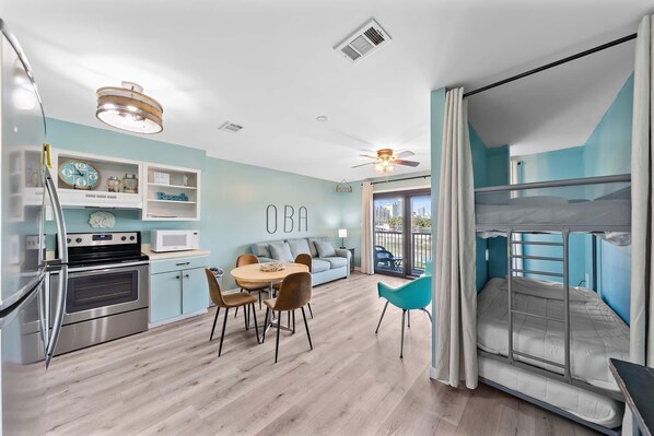 Guest accommodations at this condo feature separate bedrooms.