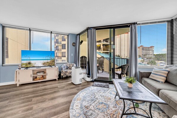 Beachfront condo with kitchen and balcony