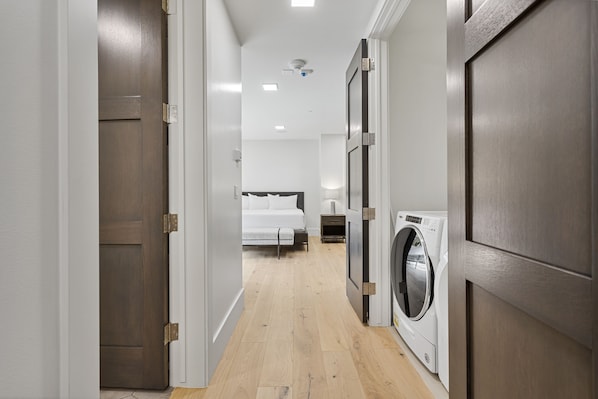 This smoke-free condo building features a fitness center. Each condo provides a washing machine and a refrigerator, plus free WiFi and a Smart TV. A coffee/tea maker and an iron/ironing board are among the other amenities available to guests.