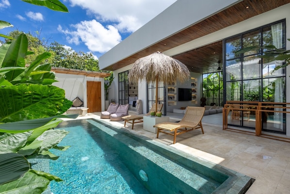 Recreational amenities at the villa include an outdoor pool.