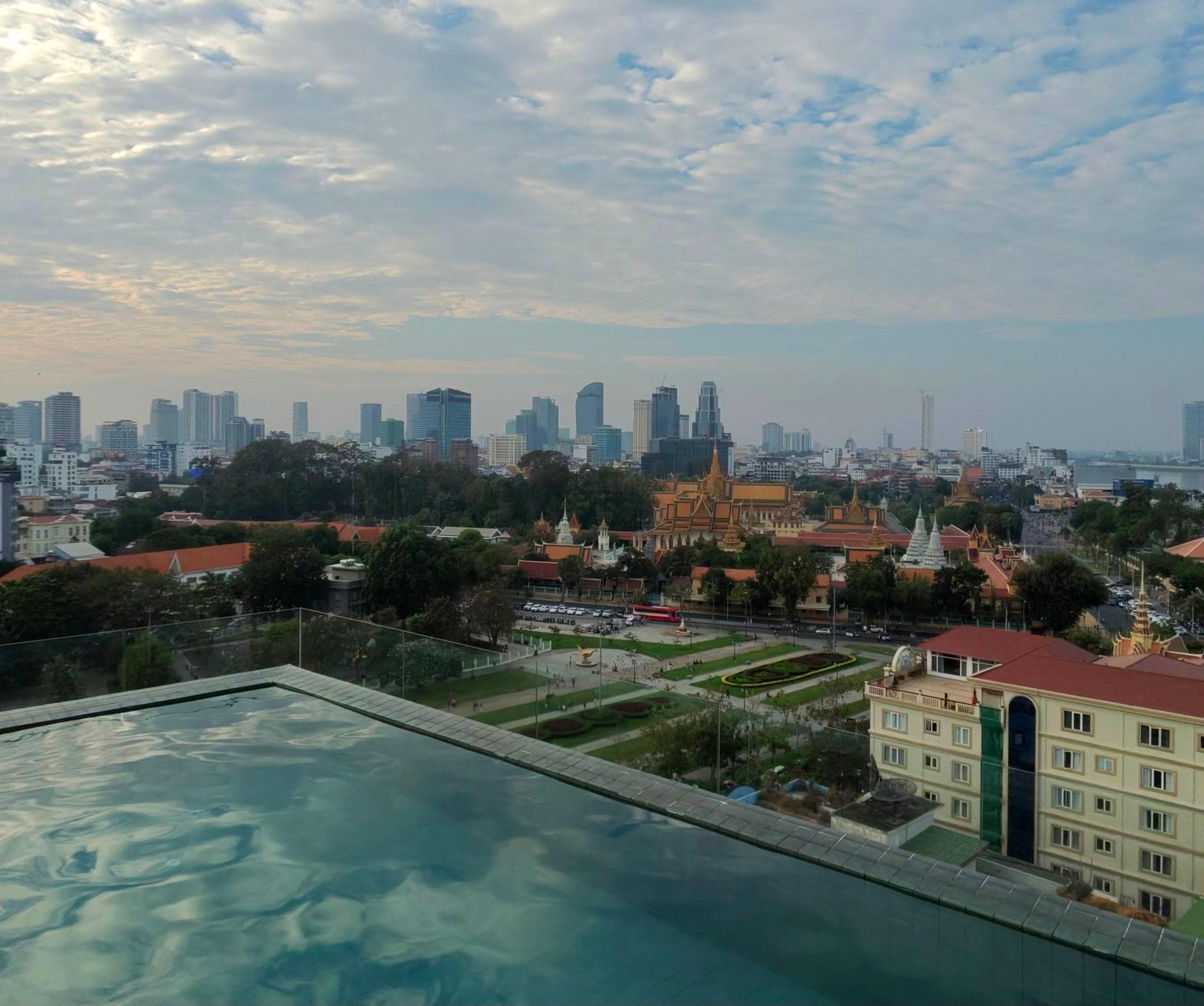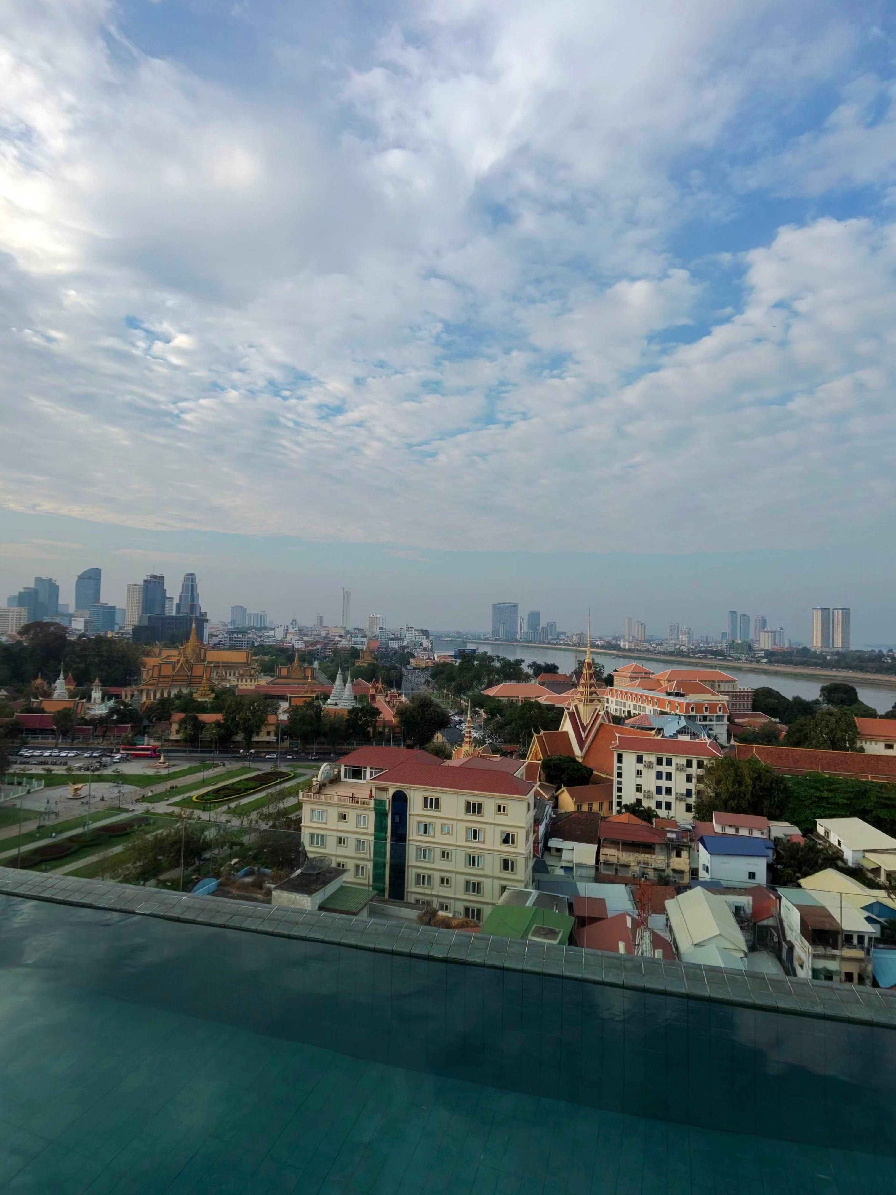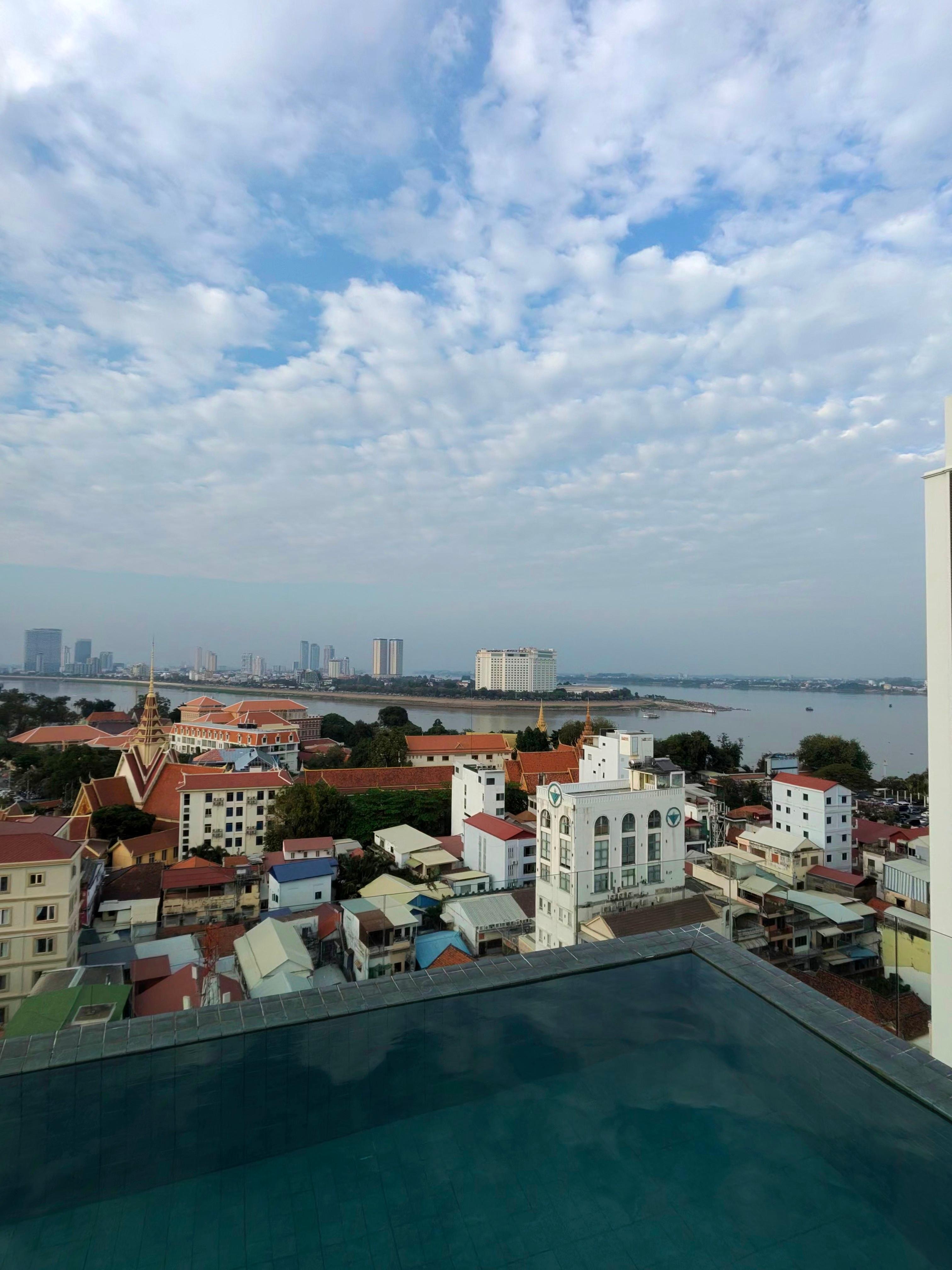 The pool on the roof is spectacular as is the dinning area in the top floor with spectacular views. The lobby has a nice koi pond. The staff were all very nice and the location is great near the Royal Palace and river walk but a little bit isolated from the noise and traffic
