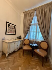 Elegant rooms and courtyards exude old-world charm with modern conveniences, offering serene surroundings despite the bustling city. Delight in breathtaking views of Charles Bridge and Prague Castle, a cozy cigar lounge, and an outstanding breakfast featuring faultless eggs benedict.