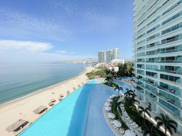 On beach with outdoor pool for sandy fun near Los Muertos Pier
