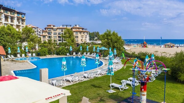 Family-friendly beachfront location with seasonal outdoor pool