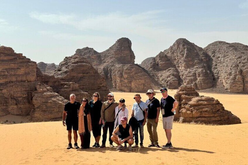 Travelers will embark on a 4x4 desert adventure through the extraordinary landscapes of Tassili n’Ajjer. Discover dramatic sandstone formations, natural arches, vast sand dunes, and prehistoric rock art dating back thousands of years. The guide will explain the archaeological importance of this UNESCO-listed desert region.
