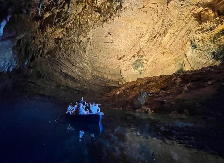 Start the tour with pickup in a minivan, minibus, or bus and travel to Melissani Lake. Walk through an underground path and discover the place of worship dedicated to Pan and Melissani. Learn the myths about Pan and Melissani while at the site and take a tour of the cave.
