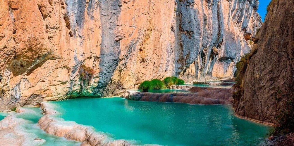 The Turquoise Waters of Millpu, are a set of more than 20 pools that cross a narrow gorge and its characteristic turquoise colour of its waters is produced due to the sunlight and the minerals that the river drags.