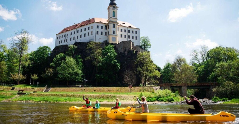 At Kemp Děčín, swap your bike for a canoe and paddle back to Bad Schandau. At the end of the tour, return the boat and equipment.