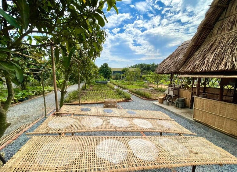 After that, you’ll visit a small home where rice paper is made by hand and see the careful process of steaming and drying the thin sheets used in spring rolls. Nearby, there’s a tiny rice wine distillery where you can see how fermented rice turns into strong local wine. If you’re feeling brave, try a small sip!