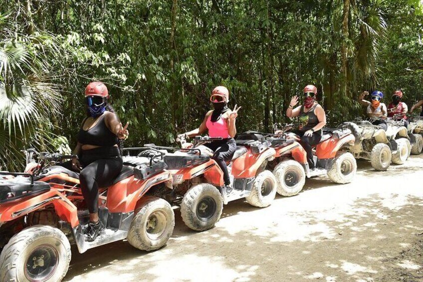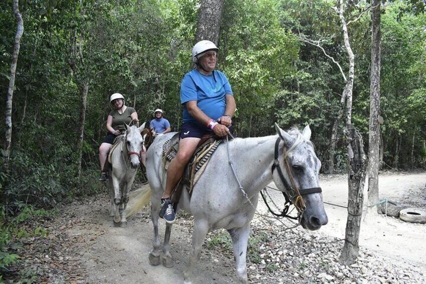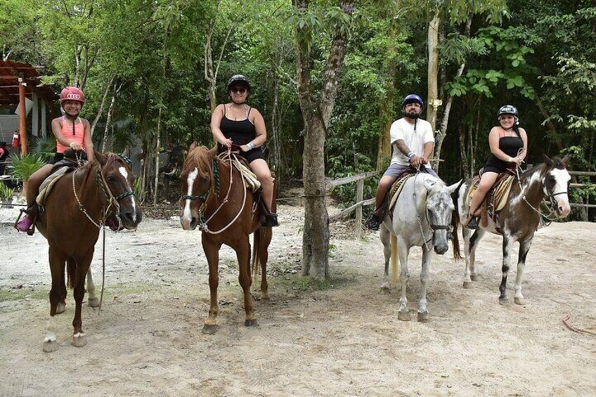 Includes shared ATV, zip lines and cenote. NO TRANSPORT, NO FOOD, NO HORSE. YOU ARRIVE AT THE PARK AND RETREAT ONLY AFTER