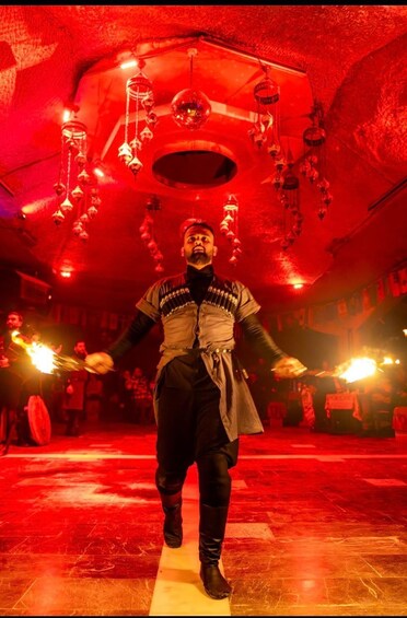 Enjoy a truly memorable evening of Turkish culture, entertainment, and gastronomy in a traditional cave venue in Cappadocia. This unique experience allows you to immerse yourself in the rich cultural heritage of Turkey while enjoying world-class entertainment in a magical and authentic atmosphere. The show features high-quality performances from professional dancers representing different regions of Turkey through colorful folk dances performed in traditional costumes, accompanied by live traditional music.