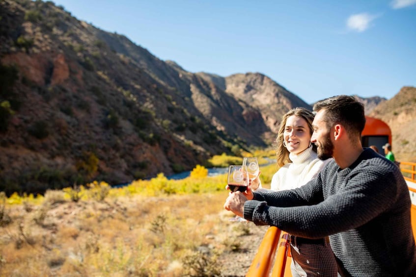 Deluxe Class offers elegant seating and an adjoining table for absolute comfort, with expansive windows providing breathtaking views of Colorado’s Royal Gorge.