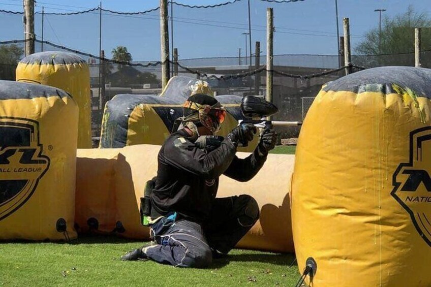 Paintball 3 Fields: 1 field with turf and blow-up bunkers & 2 stationary bunkers with rough terrain