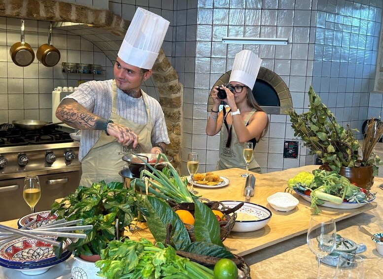 We'll learn how to knead the flour of ancient Sicilian grains to make a soft pizza to be cooked in a lava stone oven.