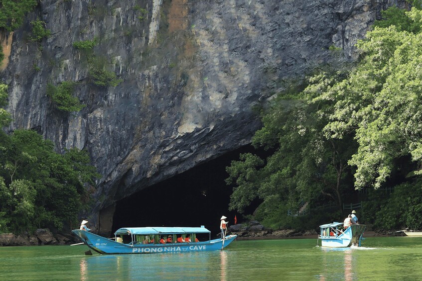 01:30 PM: Continue the journey to Phong Nha Cave. Guests board a dragon boat for a 30-minute ride along the poetic Son River. From the boat, you will enjoy peaceful riverside scenery, local village life, and interesting stories shared by the boat operator.
