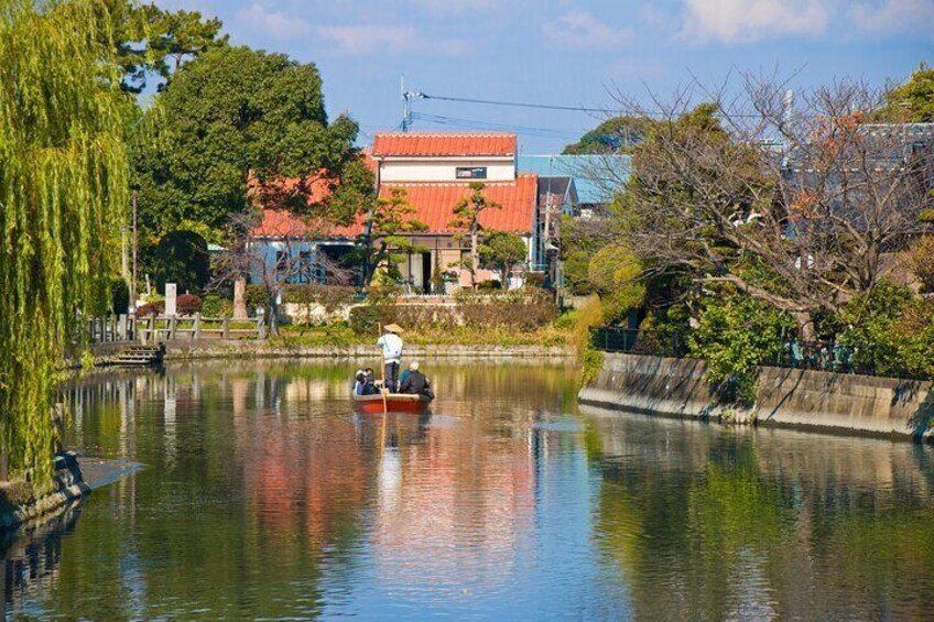 Next, you will be transported to the water city of Yanagawa, often revered as the “Venice of Kyushu. Here, drift through the picturesque canals of Yanagawa on a traditional Donko boat while enjoying the soothing melodies of your boatman.