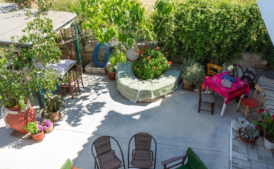 The cooking class place takes place outside using Androniki's wood oven, homegrown produce (vegetables) and homemade ingredients (olive oil). From classic Greek dishes like kremidokalitsouna, Chortopities and Sfakianes pites to homemade drinks like Raki, you're in for a treat!