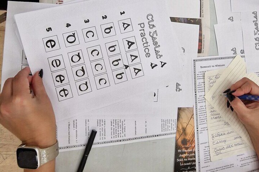 Discover the history of the forgotten Irish font called 'Cló Gaelach', learn + practice how to write it, listen to some modern music in Irish and learn some of our beautiful native language, Irish in the heart of Dublin city centre. You will also be gifted a one of a kind specially crafted post card containing the lost poetry in Irish (English translation provided) of one of Tallaght's poet's - Éilís Ní Phartholáin - Alice Furlong - feel free to use your new found knowledge of 'Cló Gaelach' to write a special message to send to someone.