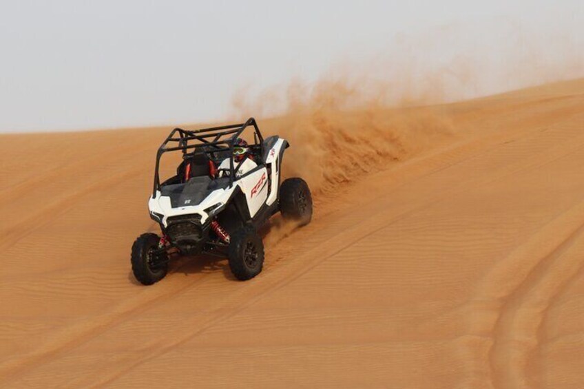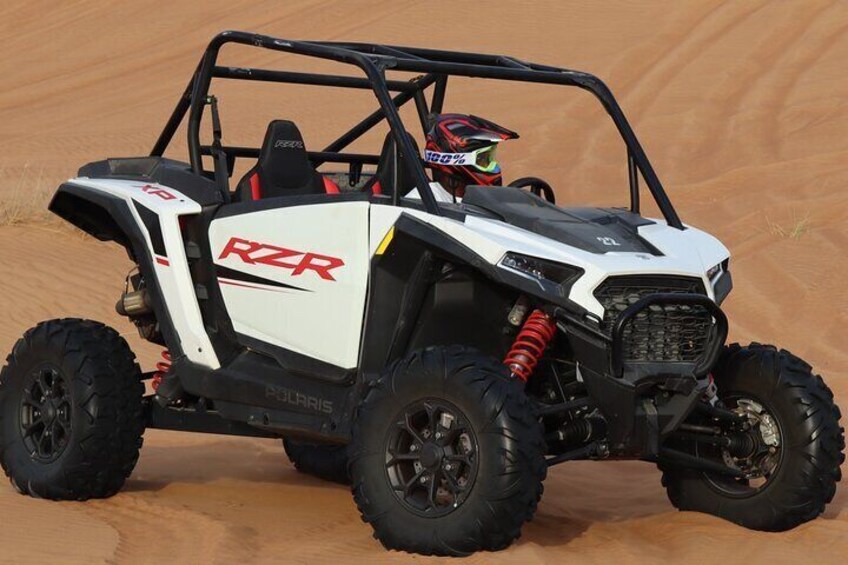 Experience the ride of a lifetime with your top the line Polaris 1000cc Automatic 2 Seats dune buggy. Embark on a guided self-drive adventure crafted for thrill seekers, complete with professional safety gear, full instructions and convenient return transfers where excitement meets comfort in the heart of the desert.