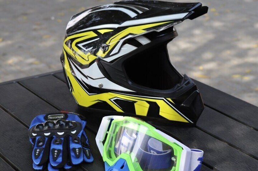 Essential safety gear. Helmet, gloves and goggles