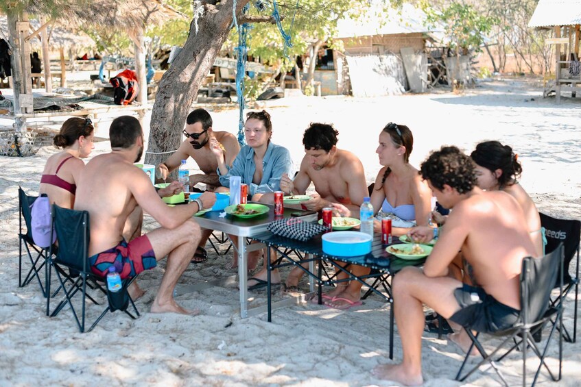 Have a packed lunch or a beach picnic on Gili Bidara. Enjoy some local fruits and refreshments. After lunch, begin your exploration of Gili Bidara. This is a quieter spot compared to the other Gilis, ideal for snorkeling and relaxing on the beach.