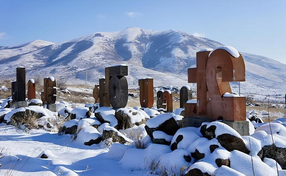 • Armenian Alphabet Monument. The complex includes sculptures of 39 letters of Armenian alphabet, as well as monuments to the great Armenian thinkers. All the letters and statues are made of Armenian tufa.