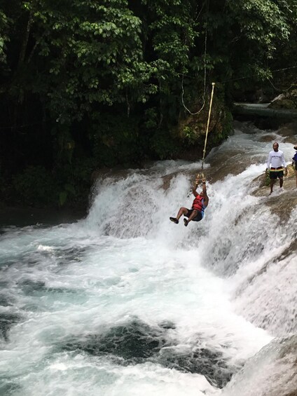 Enjoy a day of adventure and exciting activity with a visit to Dunn's River Falls, Blue Hole, and Zipline in Ocho Rios. Plunge Tarzan-style from ropes into the Blue Hole, hike through rainforest-like settings, and zipline over the famous Dunn's River Falls.