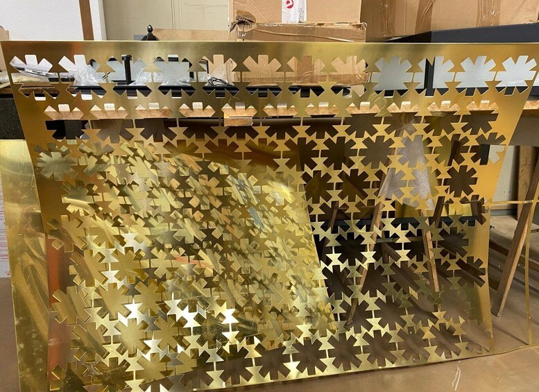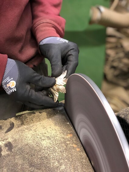 Anyone entering Bronzetto's artistic workshop for the first time is fascinated by the environment and the gleam of the brass. Incomplete chandeliers dance five meters above the ground, long brass bars fill the enormous shelves at the entrance, and buckets of brass powder, ready to be recycled, create the choreography of the tour. Guided by our manager Simone Calcinai, son of the founder, visitors can follow the fascinating path of craftsmanship, retracing the steps through which each product takes shape. The journey begins with the design and manual sketch, which is transformed into a digital version and then into a prototype that comes to life thanks to the use of traditional but also cutting-edge techniques, such as 3D printing. This exciting product development phase takes place in our technical office. Following the product's journey, the tour will take visitors to discover the different areas of the workshop: from the welding bench to the assembly bench, through the cleaning and polishing stages, appreciating the meticulous manual and mechanical work behind each of our products. Every step of the creation process contributes to bringing our brass works of art to life. For an additional fee, visitors can add a workshop to their tour, which will allow them to create a small item themselves: a personalized brass paperweight with a cast knob in a shape of their choice from among the many available.