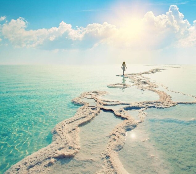 After your time in Jerash, you'll head to the Dead Sea, one of the Earth's natural wonders. You can take in the breathtaking views of the surrounding landscape and experience the unique sensation of floating on the hypersaline waters due to its high salt content. The Dead Sea's mineral-rich mud is also renowned for its therapeutic qualities, and you'll have a chance to apply it to your skin for a rejuvenating experience.