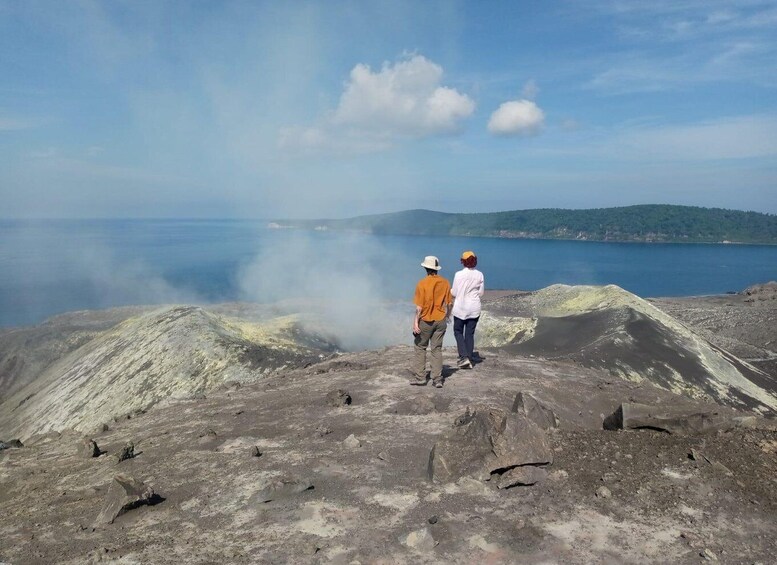 Upon arrival at Krakatoa, begin your ascent of the volcano's child, which typically takes around an hour. The scenery is breathtaking, featuring pristine seas, lush green vegetation, and striking red volcanic rocks cascading into the ocean from the crater.