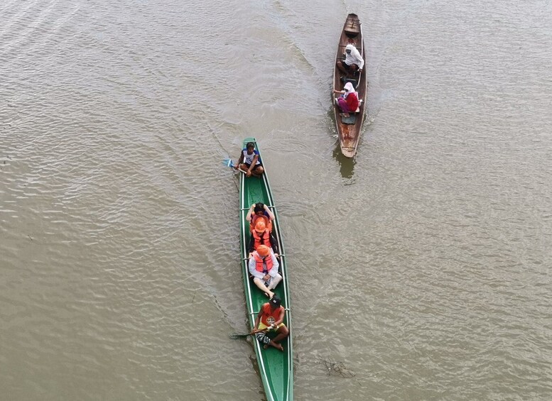 Next, journey to Pagsanjan Falls for an exhilarating river adventure. Board a traditional paddle raft with two skilled local guides who will expertly navigate the rapids through lush jungle and dramatic cliffs. Once you reach the falls, swim to a cave behind the waterfall for a refreshing experience. The return ride is a thrilling “roller coaster” experience as your raft rushes down the rapids, guided by your paddlers. Tipping to your paddlers is optional but expected.