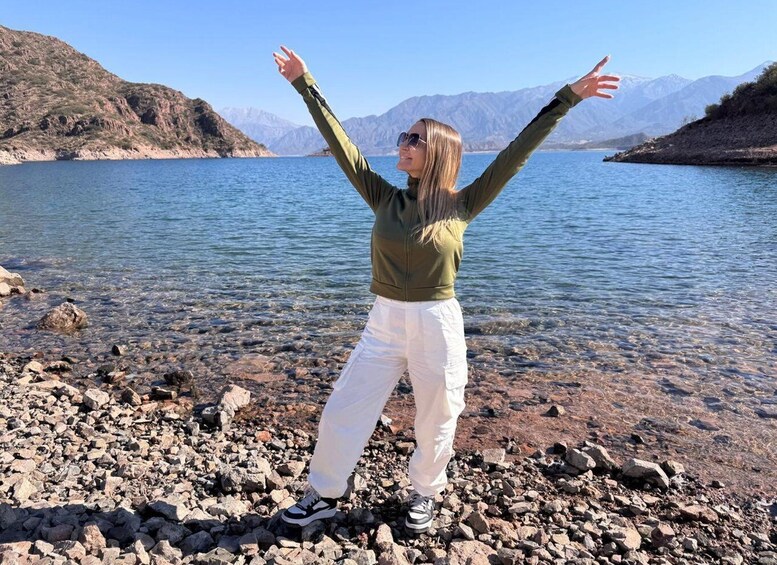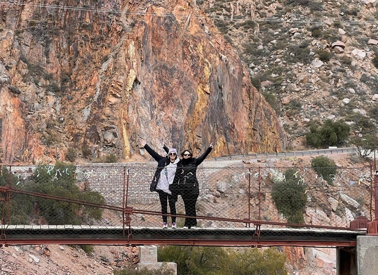 Begin your adventure with a scenic drive through the stunning Andean mountains. Make your first stop at the iconic Cacheuta Suspension Bridge, where you'll capture amazing photos and browse colorful artisan stalls offering unique local handicrafts and souvenirs. Continue your journey through the mountain tunnel to Potrerillos, pausing at scenic viewpoints to admire the breathtaking landscape of turquoise waters and dramatic peaks.
