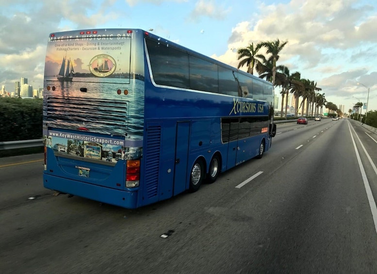 This option includes a ride on a hop-on hop-off sightseeing trolley and a round-trip bus ride from Miami to Key West with regular seating.