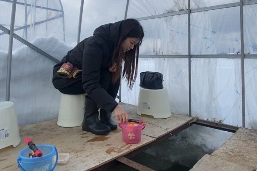 Frozen Lake Adventure Wakasagi Ice Fishing and Onsen Retreat
