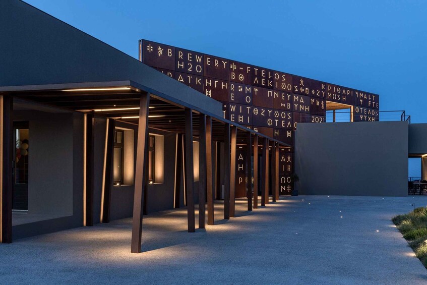 Notice the beautifully landscaped bioclimatic garden surrounding the brewery, which helps offset the industry’s carbon footprint and creates a pleasant microclimate inside and out. Ftelos Brewery produces on-site exquisite artisanal beer using signature local ingredients.