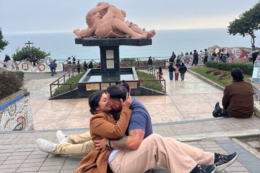We invite you to enjoy the beauty and romanticism of Love Park, a charming place on the shores of the Pacific Ocean! Located on the sea wall of Miraflores, this park is famous for its colorful sculptures and breathtaking views of the sea. The centerpiece, "The Kiss", is a monumental sculpture that represents a passionate kiss between two figures, capturing the essence of love. As you walk along its paths, you will find colorful murals and romantic messages, making it the perfect place for a quiet walk or to enjoy the sunset. It is an ideal destination for lovers and for all who seek a break full of beauty and serenity in Lima!