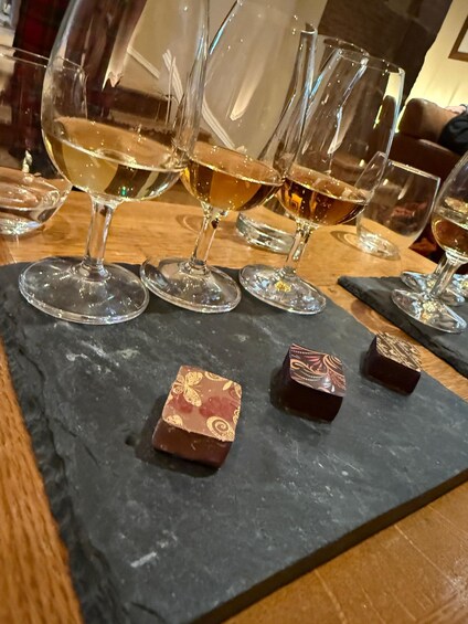 Visit Glengoyne distillery and experience the Collection Tour and Tasting. This is a guided distillery tour followed by a tutored tasting of three exceptional Single Malts from the Glengoyne Collection. Each whisky is perfectly paired with a specially created artisanal chocolate, handmade in Edinburgh by Quirky Chocolate.
