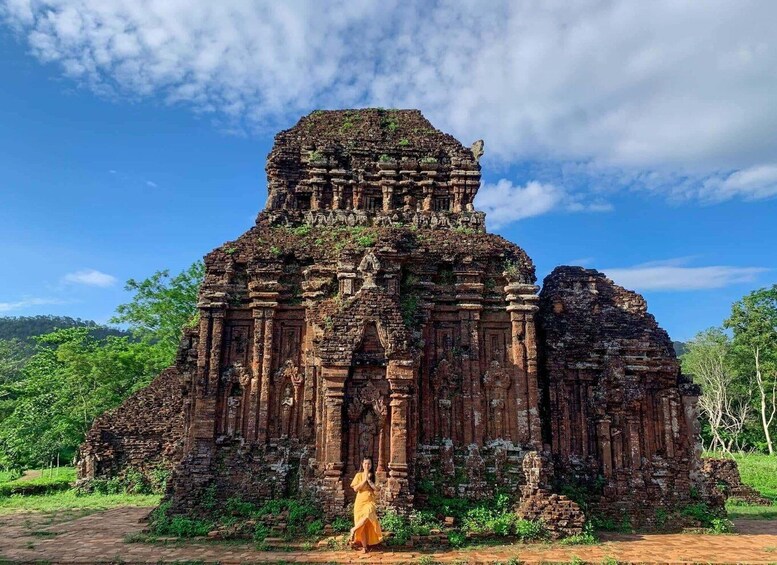 Your first destination is My Son Sanctuary, a UNESCO World Heritage Site recognized in 1999. This remarkable complex features more than 70 ancient temple towers built by the Champa Kingdom between the 4th and 13th centuries. Surrounded by lush mountains and tranquil nature, My Son is a place of great historical, cultural, architectural, and artistic value, attracting visitors from all over the world.