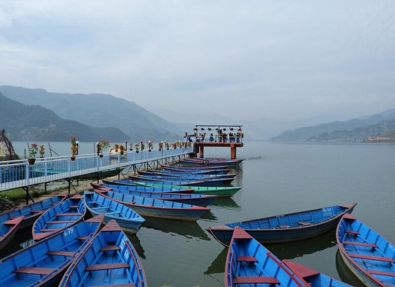 From the cultural heartbeat of Kathmandu, the tour takes you to Pokhara, a serene city located beside the stunning Phewa Lake and surrounded by the towering peaks of the Annapurna Range. Pokhara is known for its tranquil environment and picturesque landscapes. Here, you can enjoy boat rides on the calm waters of Phewa Lake, with reflections of the iconic Machapuchare (Fishtail Peak) and Annapurna peaks in the distance.