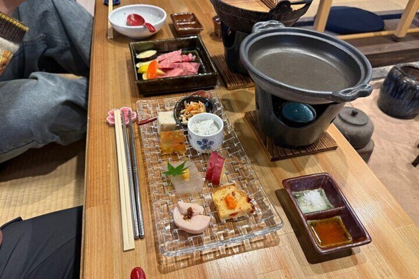 Kobe beef lunch with calligraphy and tea ceremony experiences