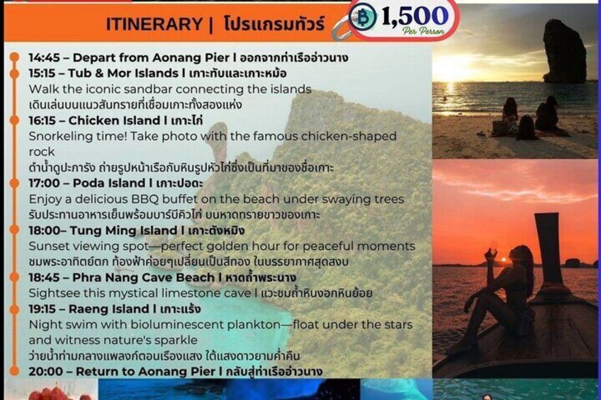 Krabi 7 Islands Sunset tour Snorkeling with BBQ Buffet Dinner
